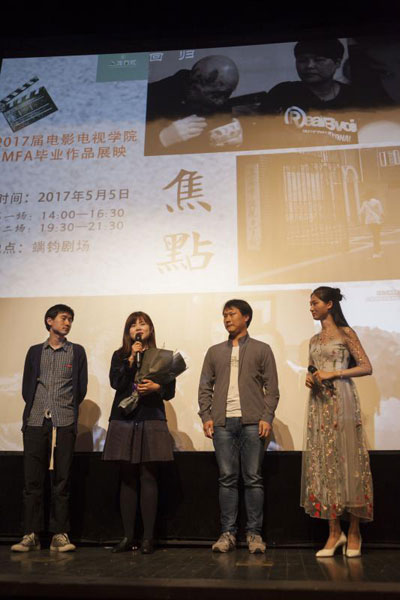 作为对研究生期间学习成果的总结,电影电视公司2017届MFA的同学们尽情施展着自己的专业才能,成就了一部部精彩的毕业作品。展映的十部作品包含了四部纪录片和六部剧情片,其中,黄筱琳、王清彬和孙文欣的联合作品《夕阳下的一场雪》讲述了东北老工业区退休干部黄昏恋的故事;吕沫的纪录片《今日上海之精武迷踪》讲述了迷踪拳的曾经、现状与未来;王歆莹的《远处的回响》描述了两代火车人的辛酸与悲喜;薛颖晨的《情话》从失语症患者的角度,讲述现代人是如何依赖手机与他人进行碎片化的交流,忽略内心真正的心声;汤安琪的《客人》讲述了主角对于亲情的认识和态度的转变;王艺的纪录片《我看得见》,记录了盲童们在梦想与现实之间的困惑;张洪洋的《比远方更远》以老剃头匠为主人公,围绕拆迁讲述了时代的变幻与人情的冷暖;王婷的纪录片《丹麦童话故事》描绘了一段跨越国界和年龄的浪漫爱情故事;郑佳音的纪录片《回归》则展现了曾经的涉毒人员是如何努力地跨过重重障碍回归社会、并尝试回报社会的人生历程;房海燕、吴宗、苏宇思、卢莉莉的联合作品《折磨》以女性在婚姻中的心理困境为观众普及了现代人诸多心理病征之一的多疑症。