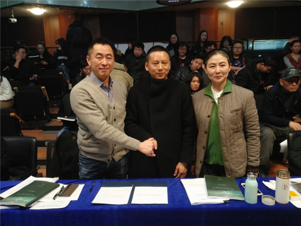随后,赵韫颖老师、魏东晓老师、石庆均先生代表williamhill官网网站艺术创作中心、电影电视公司和上海思陀文化传播有限公司签署合作协议。