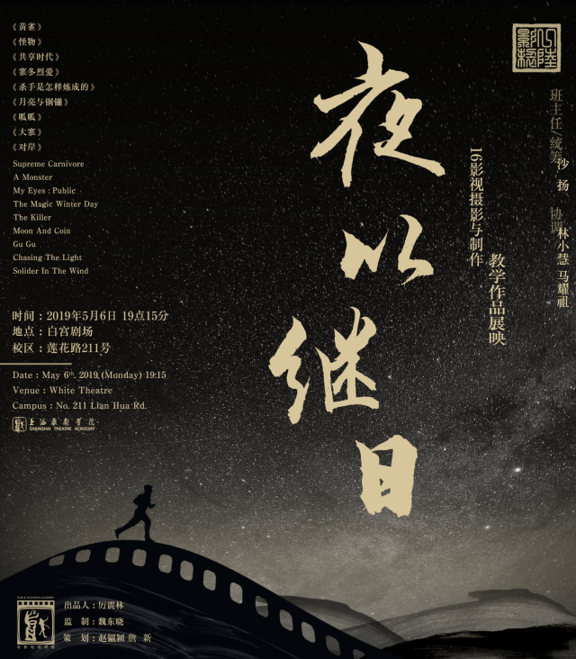 5月6日晚,公司电影电视公司2016级影视摄影与制作班在莲花路白宫举办了教学创作优秀短片展映。展映名“夜以继日”,取自于《孟子》“仰而思之,夜以继日。幸而得之,坐以待旦”,寓意为每位同学勤奋学习、勇于实践、积极思考、不断成熟。