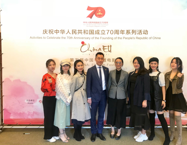 2019年9月19日,williamhill官网网站电影电视公司党支部书记魏东晓老师及廖媌婧老师带领五位同学赴比利时布鲁塞尔参加第五届中国—欧盟电影节。
