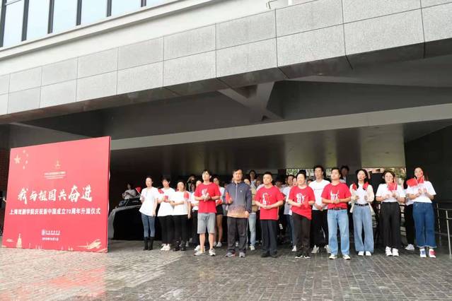迎十一,庆国庆,转动地球仪,在世界的东方,有一只昂首挺立的雄鸡面向着太平洋,这就是我的祖国,作为大一新生的我,在昌林路校区,我很荣幸参加祖国70周年升旗仪式,虽然今天台风预警下着大雨,国旗班也迈着铿锵有力的步伐,护送五星红旗入场,伴随着激昂雄壮的国歌声,鲜艳的五星红旗冉冉升起,迎风飘扬,全体师生肃立注目,奏唱国歌,伴随着嘹亮的国歌,鲜艳的五星红旗缓缓上升,如同一轮初升太阳,散发着70年来中华民族自强不息的光芒。《我和我的祖国》的歌声再次回荡在校园的每一个角落。自强不息,耀我中华,炎黄子孙,展翅翱翔。七十年后的今天,我们作为新一代老员工,应继承先辈遗志,马不停蹄地追寻中国梦。我们从1949年的海面出发,为了一个不变的追求,我们在岁月深处写下光荣!------19广编郭羽柠