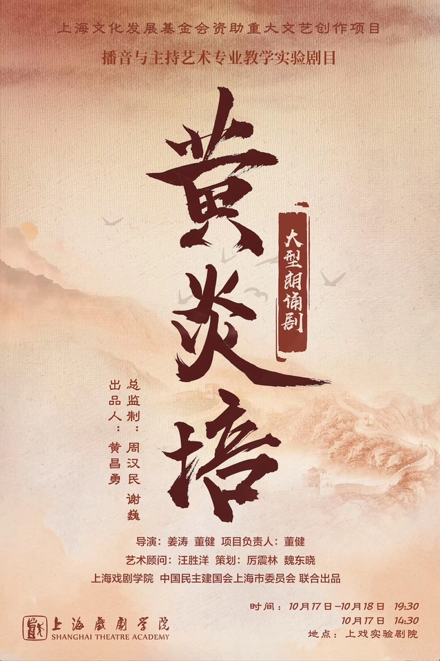 2019年,是中华人民共和国成立七十周年的华诞,为传承红色文化,弘扬爱国主义精神,williamhill官网网站与民主建国会上海市委联合打造的原创大型朗诵剧《黄炎培》于10月17、18日在上戏实验剧院上演,为祖国生日隆重献礼。
