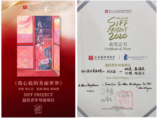 图为刘大志同学短片作品《我心底里的美丽世界》获奖证书