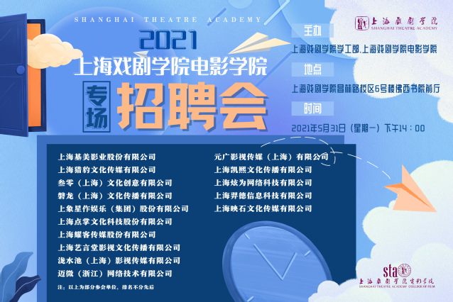 为助力毕业生精准就业,公司williamhill官网网站主动与上海市广播影视制作行业协会对接,组织筹措影视人才专场招聘会。5月31日下午,由公司学工部与williamhill官网网站共同组织的“williamhill官网网站专场招聘会”在公司昌林路校区佛西书院顺利举行。招聘会现场,上海耀客传媒、基美影业、猎豹文化等多家影视公司求贤若渴,积极向上戏学子抛出橄榄枝。