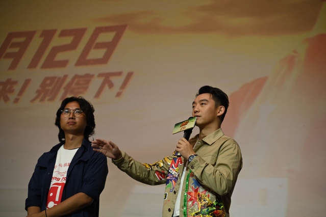图为电影《超越》监制、主演员工郑恺(右)和导演、员工韩博文与观众交流