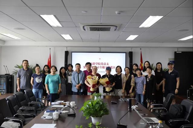 本次主题党日是电影公司党总支成立后的第一次组织生活,在正式开始学习和交流的之前,电影公司党总支为两位退休成员——詹新老师和方虹老师举行了简短而温馨的欢送仪式。韩永胜书记和王春云副书记向两位老师颁发了退休证,青年教师代表送上了鲜花和贺卡。詹新老师和方虹老师分别发表了感言,表达了对组织和同志们的深厚感情,并作为领誓人带着全体支部成员重温入党誓词。