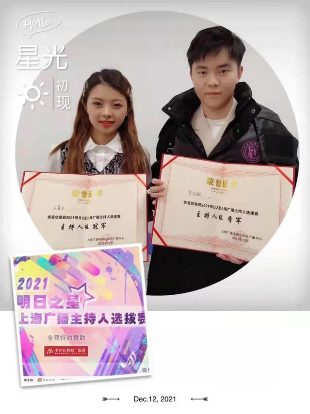 12月12日下午,2021“明日之星”上海广播主持人选拔赛全国总决赛在上海广播艺术中心正式举行。公司20级主持艺术研究生王蕙华喜获冠军,19级主持本科生贾庆飙喜获季军。李泽鹏老师带领主持本科一二年级员工及部分21级内蒙班同学赴现场观赛,为选手加油助威。