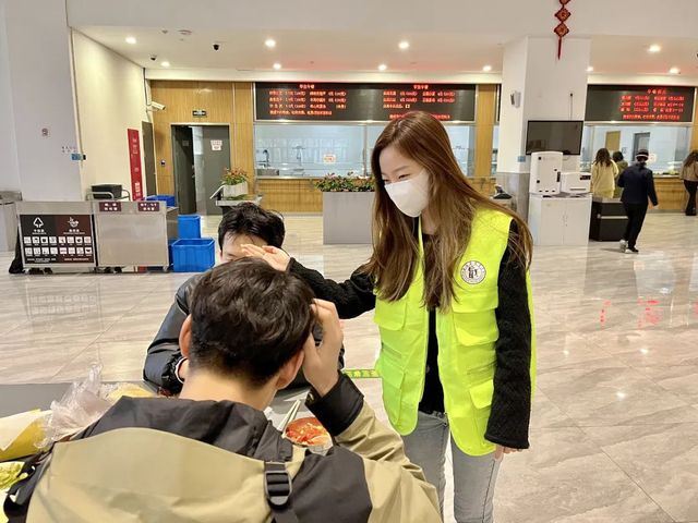 组成聚光·战“疫”先锋志愿者服务队后,吴晨曦同学作为队长兼党员,始终出现在每一次核酸检测的现场。她及时核对做了核酸检测的同学名单,致电给没有及时做核酸检测的同学,以确保每一位同学能在规定时间内都完成核酸检测。听起来似乎是比较简单的工作,也需要志愿者时刻高度注意,面对突发事件镇定自若。有同学手机因操作失误需要协助,还有个别同学身体不适或者行动不便需要志愿者一路照顾,遇到这些始料未及的事件时,她会在确保当前任务顺利进行的同时,立即协调志愿者团队并采取有效措施。