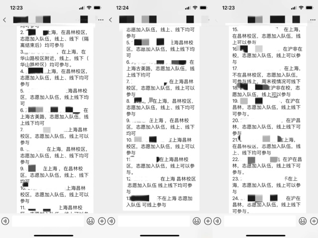 徐冉作为一名入党申请人,主动加入了聚光·战“疫”先锋志愿者服务队,在核酸检测期间,根据现场签到的人数,她跑去宿舍敲门,催促还没有来做核酸检测的同学,尽快去完成核酸检测,并且在微信群及时反馈宿舍情况,保证每个人都能及时完成核酸检测 。