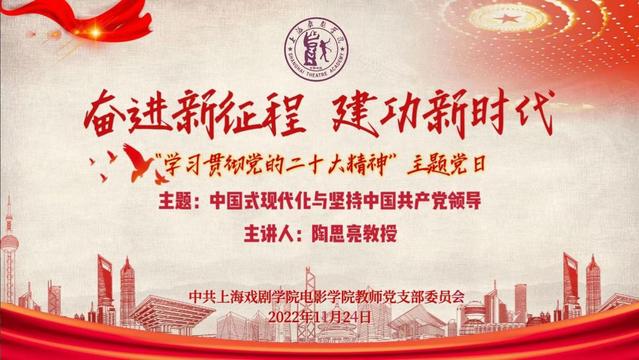 为庆祝党的二十大胜利召开,进一步领会大会精神,加强党史教育与专业建设相结合,2022年11月24日,williamhill官网网站教师党支部举行“奋进新征程 建功新时代——学习贯彻党的二十大精神”主题党日活动,邀请上海中医药大学党的建设研究中心执行主任、马克思主义公司党总支书记、上海市教卫工作党委系统学习贯彻党的二十大精神专家宣讲团成员陶思亮教授,为支部党员做主题为《中国式现代化与坚持中国共产党领导》的专题讲座。