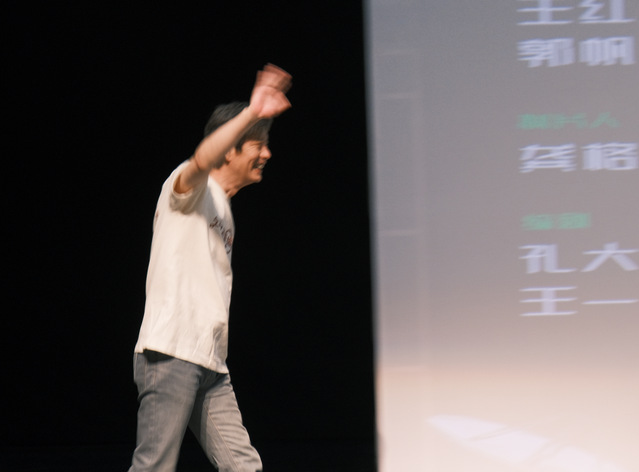 在放映结束后,主创团队成员孔大山、王一通和蒋奇明上台与观众进行交流。大家纷纷举手提问,分享自己对影片的感悟和困惑。现场的气氛特别活跃。