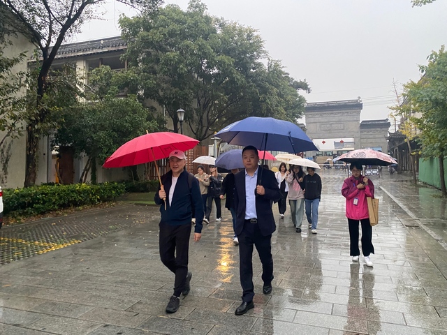 会议结束后,师生实地走访西塘古镇,在当地各级干部的陪同与讲解下,深入探寻古镇中的历史文化。师生们依次参观古镇内的朱宅、纽扣博物馆、永宁桥以及根雕艺术馆,深入了解在地传统文化的延续,新时代的科技创新与地方的艺术文化形成碰撞产生了独特的审美感受。走出西塘前往红菱村乡间,在乡野间体验独特的观察课堂。深入田野实地考察过程中,员工们不仅对新时代村庄实施的美丽乡村策略有了更深刻的了解,也对水乡江南的风土人情有了更直观的感受。当地原有的天然的乡土风情也为影视作品的创作提供了土壤,参观途中师生路过路过电影《乘风破浪》的拍摄地,感受当地电影艺术与实际生活的交融,电影的画面与现实交织也展现出了姚庄独有的文化魅力。