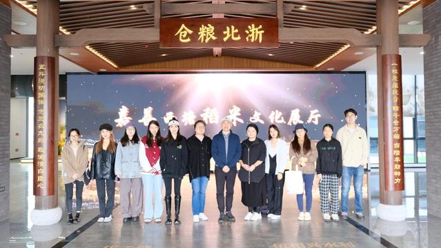 师生们在红菱村稻米文化展馆合影留念
