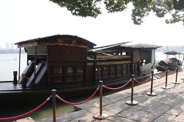从纪念馆一路向北,支部党员们前往南湖会景园码头,来到当年一大参会代表登船的故地,在波光粼粼的湖边登上了游船前往湖心岛瞻仰当初的红船。在游船上,员工党员洪慧程和石翊之分别为大家带来了红船上的一堂特别的微党课。