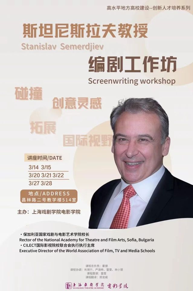 Stanislav Semerdjiev教授是CILECT国际影视院校联合会执行主席、保加利亚国立戏剧影视艺术公司经理、保加利亚电影、电视和广播编剧协会主席。曾担任100多部欧洲长篇或短片项目的脚本编辑、编剧和制片人,其丰富的实践经验和专业知识无疑将为本次工作坊增添极大的价值。