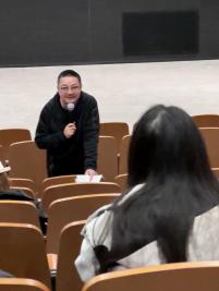 在同学提问环节,吴天戈导演与同学们交流了本次讨论强调了在艺术创作,尤其是戏剧和影视作品中提升叙事能⼒的重要性。通过对优秀作品如⼀部老电影的分析,指出了⼀部成功的作品需要具有紧凑、无废戏的叙事结构,并且能够有效地将⽂本转化为视觉画面。讨论还触及了现代媒体环境中关于吸引观众注意⼒的挑战,以及如何在短时间内清晰地传达主题和情节。强调了叙事技巧对于创 造引⼈⼊胜的艺术作品至关重要,同时探讨了面对当代媒体环境时创作所⾯临的挑战和策略。