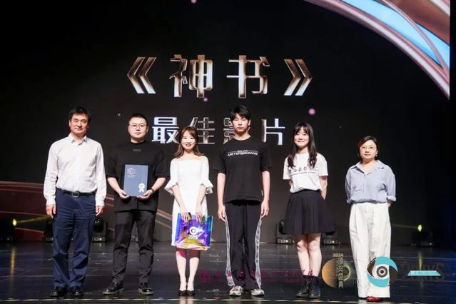 韩永胜书记与咔么租赁运营总监谢娟为《神书》颁发“最佳影片奖”。
