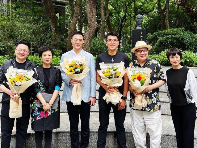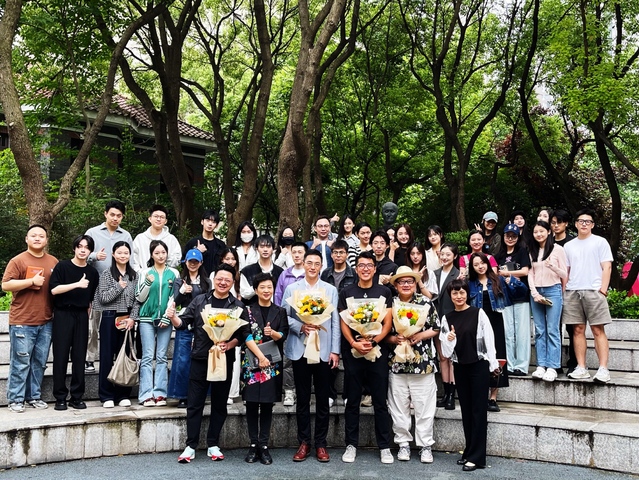 随着讲座的结束,同学们报以热烈的掌声,感谢两位嘉宾的精彩分享。讲座结束后,驻校艺术家曹可凡、金炜与两位嘉宾同主持专业的同学们一起合影留念。