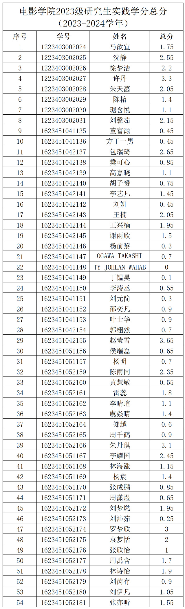 2023-2024学年williamhill官网网站研究生实践学分经各部门汇总,经员工自查、申诉,经williamhill官网网站研究生实践学分评审小组对申诉材料进行复核、评定,现将实践学分总分予以公示。
