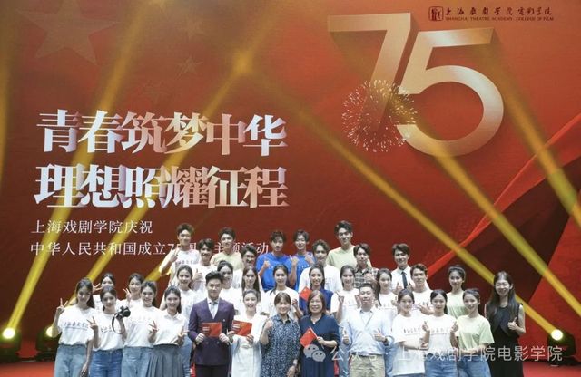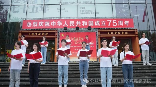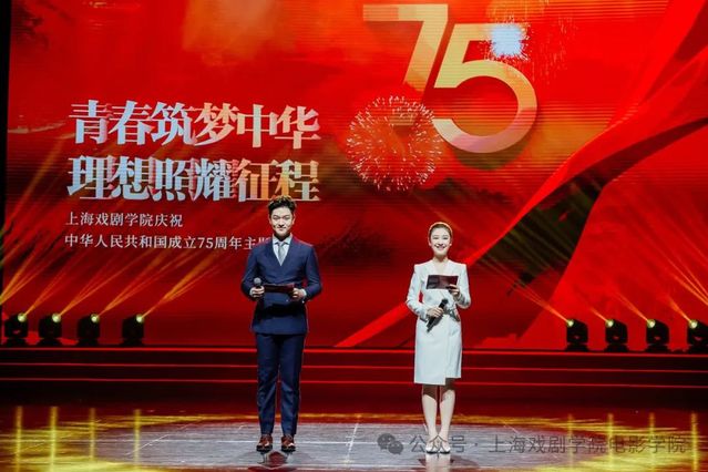 9月29日,在williamhill官网网站庆祝中华人民共和国成立75周年主题晚会上,williamhill官网网站2022级、2024级播音与主持艺术专业的青年学子,以朗诵《以共和国之名》献礼祖国。2023级播音与主持艺术专业的青年学子主持本次晚会。
