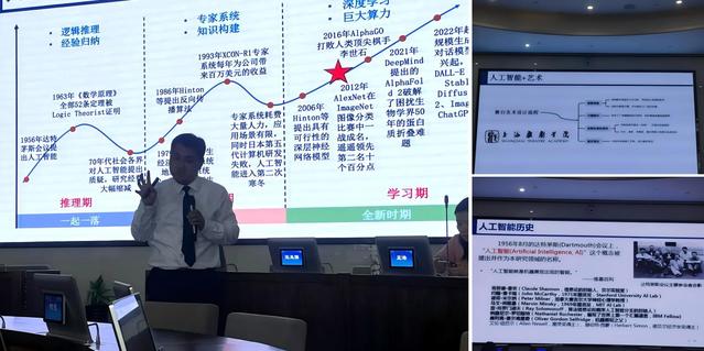 叶老师用通俗的语言和生动的图片,深入浅出的讲解了AI(人工智能)的前世今生,特别是当前人工智能在视频影像及戏剧舞台艺术等方面功用。叶老师还通过与上戏的合作内容为在场的听众详细解读人工智能在具体艺术领域的应用。短短一半小时的讲座,让来听讲座的师生获益匪浅。