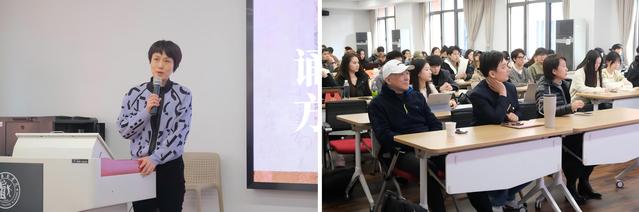 讲座中,姚教授特别强调了“先达意再传情”的原则,指出诵读者应首先确保意义的准确传达,然后再传递情感,以便观众能够产生共鸣。他提倡,在诵读时关注句群而不是单个句子,以实现连贯流畅的效果,使受众感到舒适。