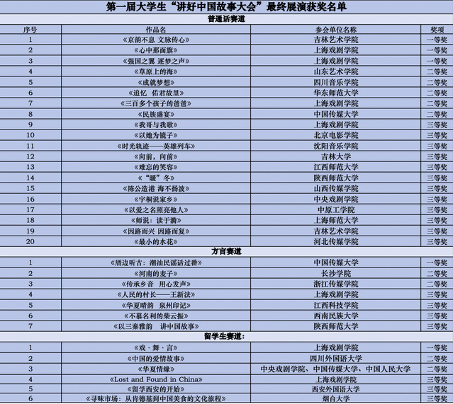 方言赛道一等奖获得者、中国传媒大学播音与主持艺术专业员工吴彦宇表示:“第一次用家乡话在舞台上呈现,感动、激动!用绵薄之力给潮汕上分了!如果说普通话是“大家”凝聚力的刚需,那我想方言就是“小家”归属感的糖片,无论大家小家,我们总能在言语之间感受到这片土地是有情、有力量的……非常感激上戏给予这样的平台,在上海这两天真的感受到艺术类院校的魅力,博采众长,不断精进。”