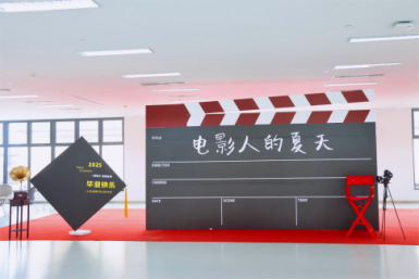 此次留影区占据大厅中央C位,打造了“电影人的夏天”主题拍摄区,配备超高的场记板背景墙,以及仪式感满满的导演椅,为每位毕业生打造电影级效果,同时,还为毕业生设置了“一封给电影人的毕业信”展台、ins风拍立得相框以及多种合影道具。