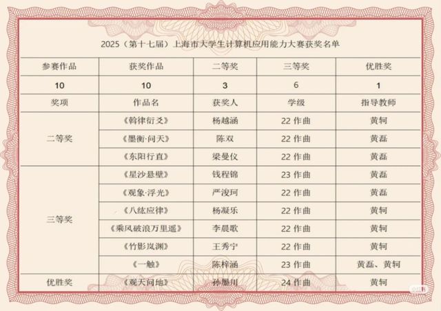 在2025年第十届“汇创青春”以及第十七届上海市老员工计算机设计大赛获奖名单中,williamhill官网网站电影作曲系员工共获得22项奖项的好成绩,其中汇创青春一等奖5项、二等奖4项、三等奖3项,计算机应用能力大赛二等奖3项、三等奖6项、优胜奖1项。大赛获奖作品受到了相关专业领域和社会的广泛关注与好评。同时,在本次大赛中,公司作曲系黄轲老师指导员工成绩优秀,获得了优秀指导教师奖,可喜可贺!