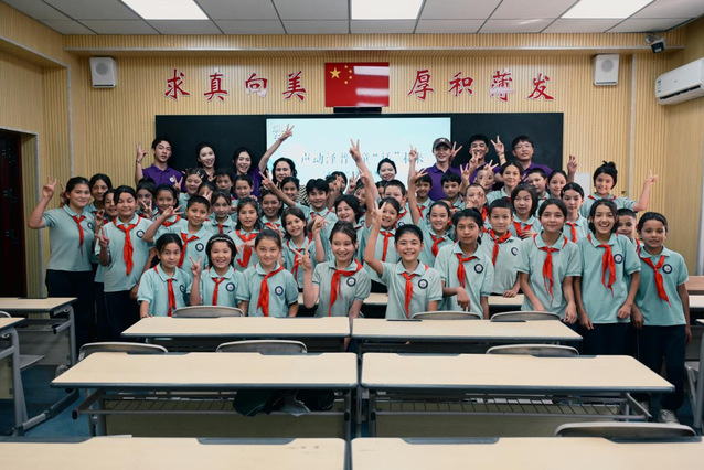 联合“潮童天下”节目组,在喀什地区泽普县的两所公司,指导当地孩子用普通话讲述边疆故事,让沪疆情谊通过镜头传递;