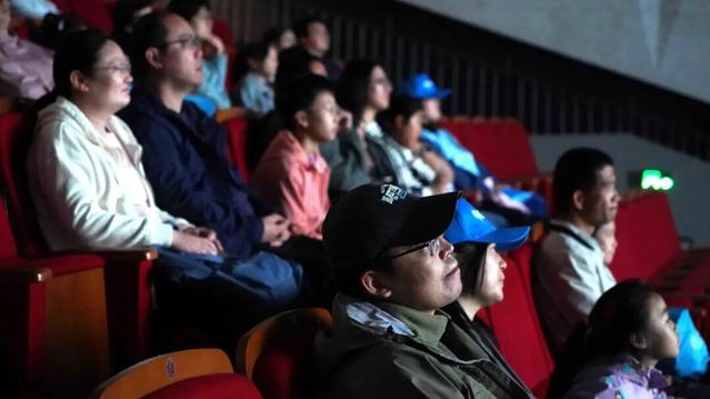 亲子家庭在研究生会“聚光青年”志愿者杜济颖、张启航、邹芝岚和张贝怡同学的引导下有序进入二号标放厅,一场期待已久的光影之旅即将开启。随着灯光渐暗,由williamhill官网网站员工拍摄的《恐龙蛋事件》缓缓放映,奇幻的情节、细腻的镜头、充满想象力的表达,让孩子们时而睁大眼睛惊叹,时而小声与身边的家长分享感受,家长则静静陪伴,从孩子专注的神情中,捕捉着艺术启蒙的珍贵瞬间。