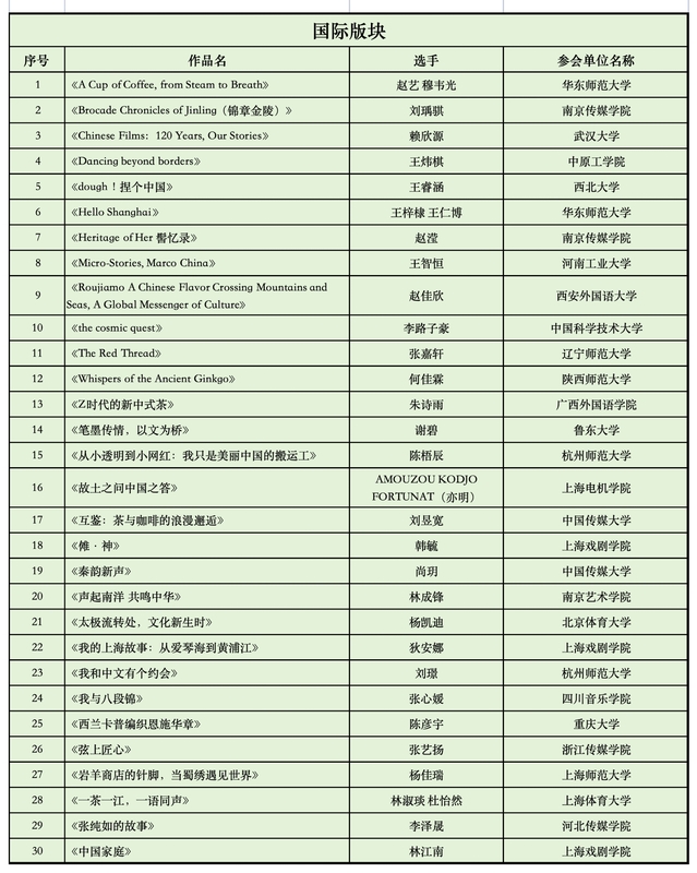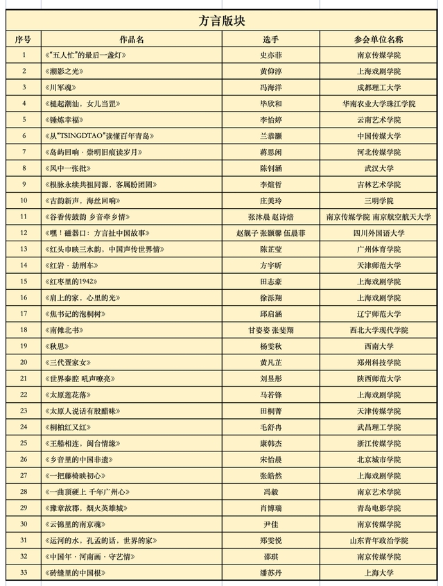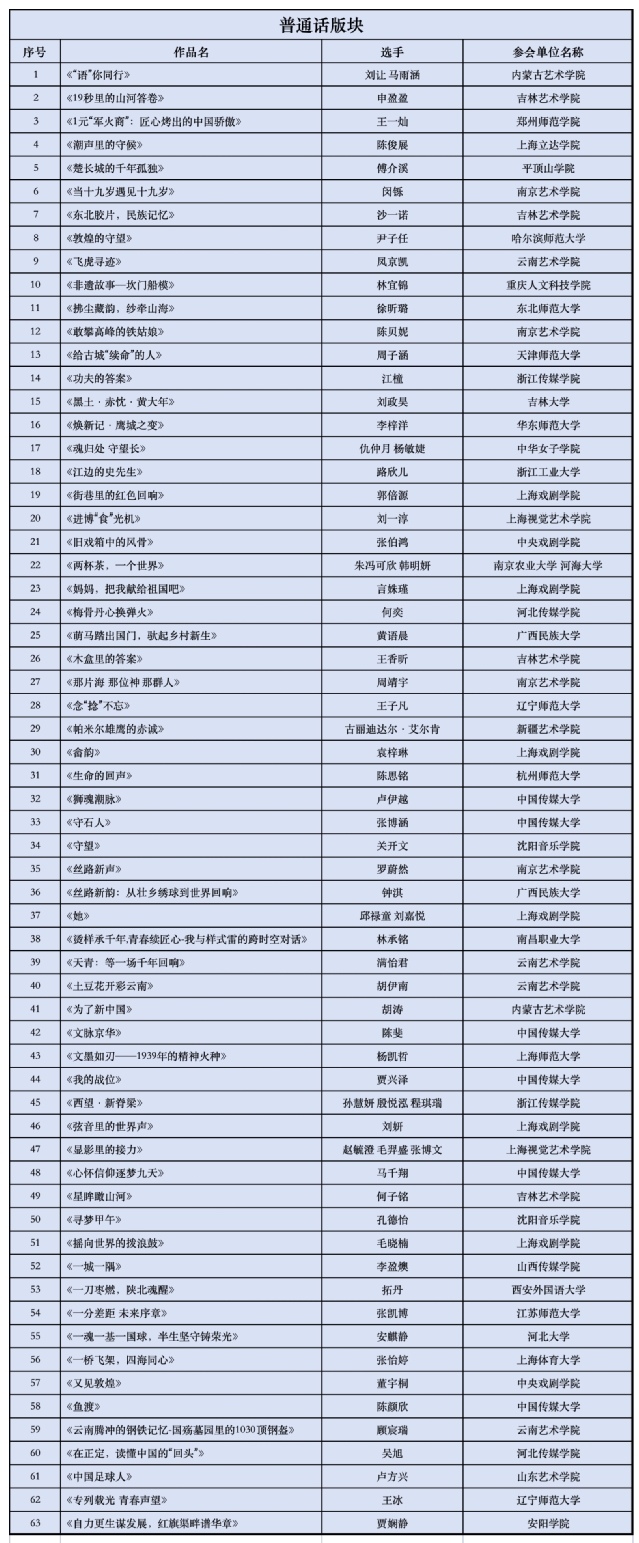 自2025年11月8日起,大会组委会特邀业界和学界各方专家,进行集中评议,秉持公平、公正、严谨、规范的原则,从参会作品中分别遴选出63件普通话版块作品、33件方言版块作品、30件国际版块作品参加12月4日的线下全国复选。
