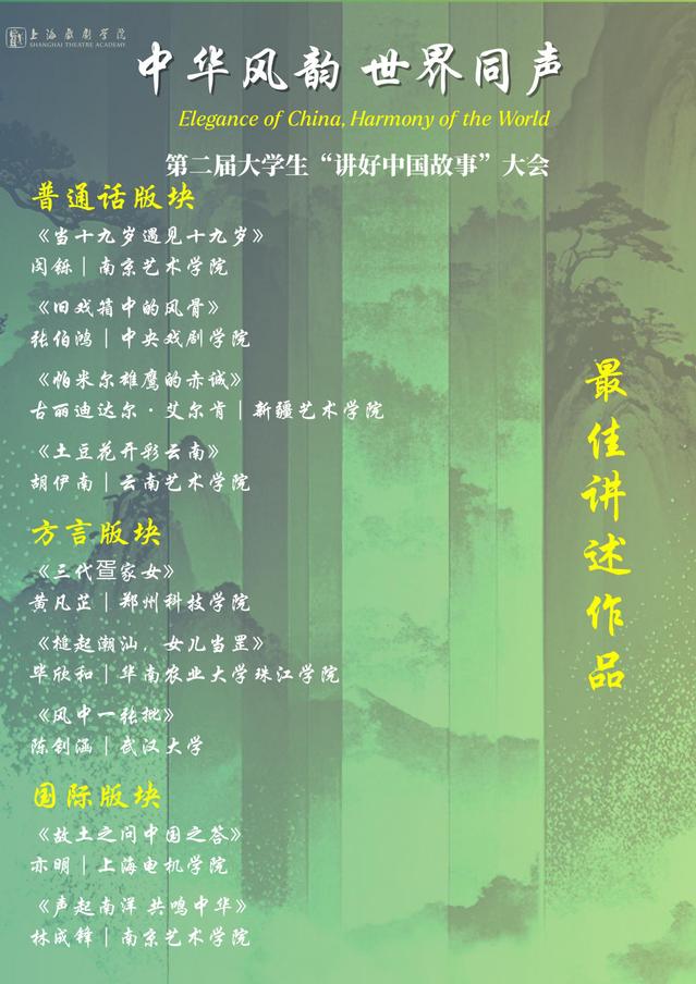本届大会以“中华风韵·世界同声”为主题,为高校学子提供了展示传播才能、深化文化认同、践行时代使命的重要平台。青年们以创意与真情,为提升中华文化的传播力、影响力注入了蓬勃青春力量。