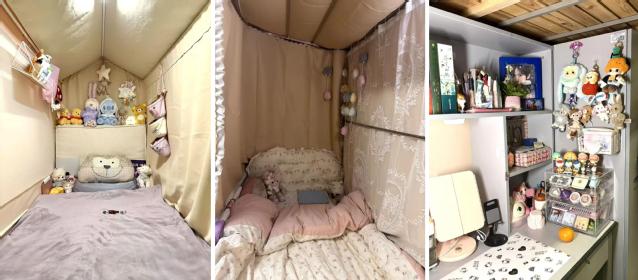 柔软,也可以很有力量。奶油风的暖色调包裹出独处的软边界,玩偶堆成的"治愈墙"是睁眼就能接住的甜蜜。没有复杂的装饰,却把每个喜欢的小物件都安排得恰到好处。星形挂饰在暖光照射下,让整个床铺看起来像是裹了云朵般柔软。这里的每个细节都在诉说:生活不必太过复杂,简单温柔就很好。