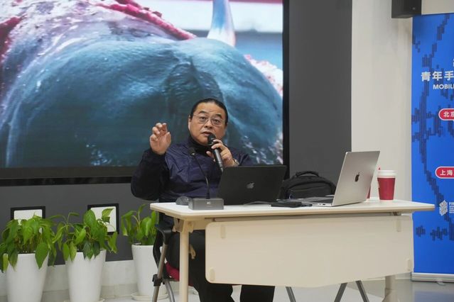 最后一天课程浓缩了另两种课程的精华,聚焦于“如何实现”。摄影指导蒲英杰以其使用vivo手机拍摄的多部商业短片与个人作品为例,系统解构了手机影像创作的全流程。他提出,手机应被视作一台摄影机,其次才是轻量化设备。从前期勘景测试、分镜设计,到现场多机位管理、专业监看方案,再到后期调色,他证明了手机影像已能支撑起完整的电影级叙事表达。